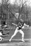 A Clark University baseball player in the middle of an at-bat, date unknown.