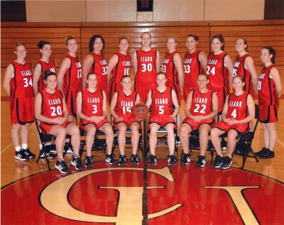 Group photograph of the Clark University women’s basketball team, circa 2000s.