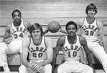 Kevin Clark (#34), Bruce Bolcer (#20), Kevin Cherry (#10) are among the four Clark University men's basketball team members pictured in this photograph. circa 1979-1981. All three are members of Clark Athletics Hall of Fame. They led their team to become NCAA Northeast Regional Champions and advance to the Elite 8. The Cougars finished the 1981 season a remarkable 22-2 and were ranked 6th in the country.