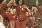Photograph of team member Debbie Allen and the rest of the Clark University women’s basketball team celebrating, 1982-1983.