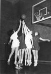 Action photograph of a Clark University women's team basketball game, circa 1960s.