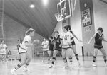 Action photograph of a Clark University women's team basketball game, circa 1980s.