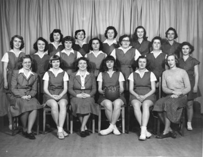 Group photograph of the Clark University women’s basketball team, 1948-1949.