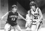 Action photograph of a Clark University women's team basketball game, circa 1980s.