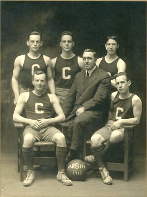 The Clark University varsity men's basketball team group photo, circa 1950s.