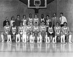 The Clark University men's basketball team group photograph led by Coach Wally Halas, circa 1983-1984.