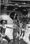 An action photograph of the Clark University men's basketball team during a game, 1984. That season, the team were the national runners-up in the NCAA Men's Basketball Championship Division III. One of the players in this photo is #12, Dan Trant, who went onto play for the Boston Celtics and for the Irish national basketball team. He is considered to be one of the best athletes in Clark University history.