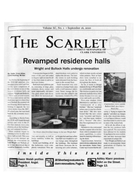 The September 16, 2010 edition of The Scarlet (est. 1939), Clark University's student-run newspaper. The Scarlet is intellectually and editorially independent of the University.