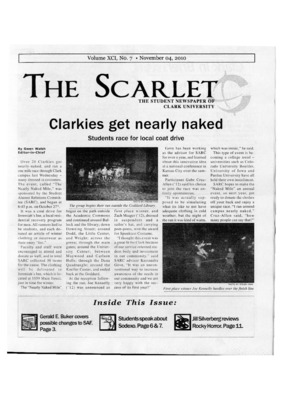 The November 4, 2010 edition of The Scarlet (est. 1939), Clark University's student-run newspaper. The Scarlet is intellectually and editorially independent of the University.