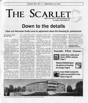 The September 23, 2010 edition of The Scarlet (est. 1939), Clark University's student-run newspaper. The Scarlet is intellectually and editorially independent of the University.