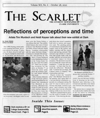 The October 28, 2010 edition of The Scarlet (est. 1939), Clark University's student-run newspaper. The Scarlet is intellectually and editorially independent of the University.