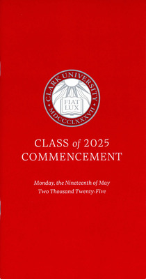 Annual Commencement Program for graduation ceremonies at Clark University, held on May 19th, 2025.