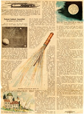 Ray Bradbury once wrote that “Verne is the verb that moves us to space”, which is to say that Jules Verne’s cultural and scientific influence is seismic. Robert Goddard was one of many 19th and 20th century scientists motivated by Verne, H.G. Wells, and other originators of science fiction. Verne’s From the Earth to the Moon (1865) made an enormous impression on Goddard as a child; biographer David Clary even demonstrates his proclivity for getting lost in the fantasies found in early science fiction, at times losing sight of the science required to make said fantasies reality. The very same ideas and iconography inspiring Goddard, sometimes beyond practicality, also inspired journalists to disregard fact in their reportage.