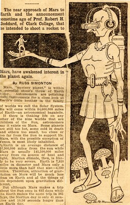 Robert Goddard, press, newspapers, editorial cartoons, illustrations, Mars, rockets