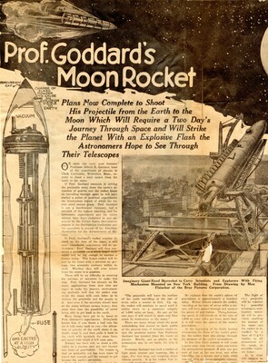 Collected together, this series provides insight into Goddard as a public figure, the kinds of strategies and misinformed angles that can drive news cycles. News coverage of Goddard’s “Moon rocket” was worldwide, seeding Jules Verne’s visions of spaceflight into the realm of possibility for the public. The fantasy of Goddard’s ‘Moon rocket’ went on to ignite imaginations the worldwide over in the same way Verne’s fantasies had for Goddard himself.