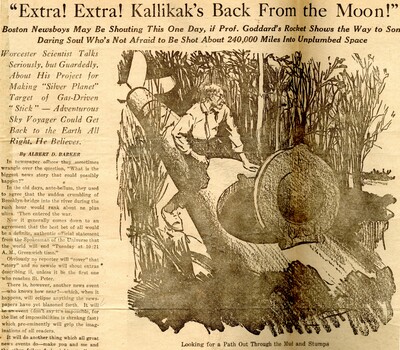 Unknown, ""Extra! Extra! Kallikak's Back from the Moon!", Sunday Herald Magazine" (1924). Goddard in the Press: Editorial Cartoons and Illustrations (1920-1929) [In Progress]. 33.