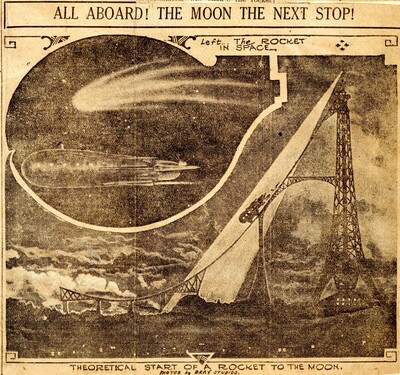 Collected together, this series provides insight into Goddard as a public figure, the kinds of strategies and misinformed angles that can drive news cycles. News coverage of Goddard’s “Moon rocket” was worldwide, seeding Jules Verne’s visions of spaceflight into the realm of possibility for the public. The fantasy of Goddard’s ‘Moon rocket’ went on to ignite imaginations the worldwide over in the same way Verne’s fantasies had for Goddard himself.