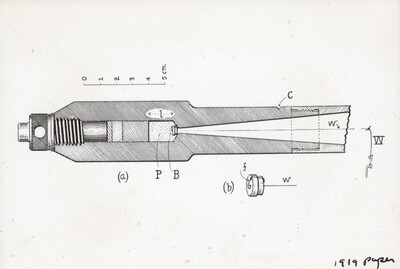 [009] Grooved nozzle for rotating 1" rocket projectile, 1918