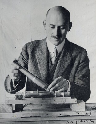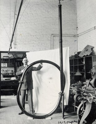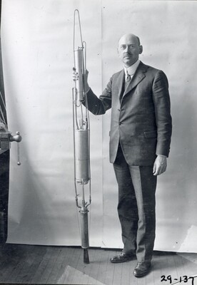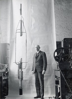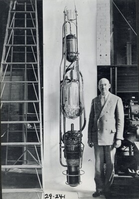 • [003] R.H Goddard with circular vacuum tube used to prove rocket efficiency greater in vacuum than in air, 1916 by Unknown