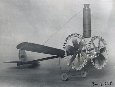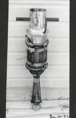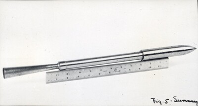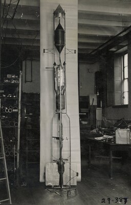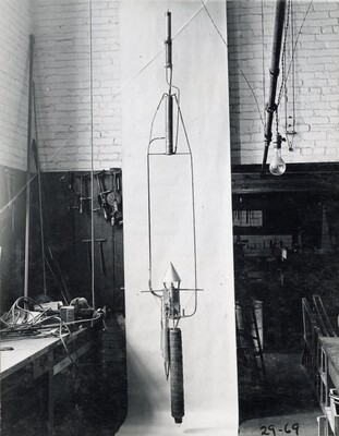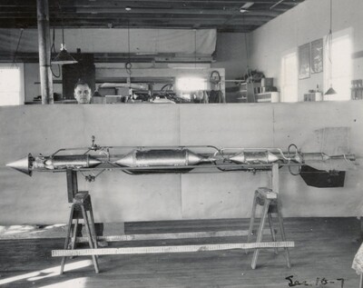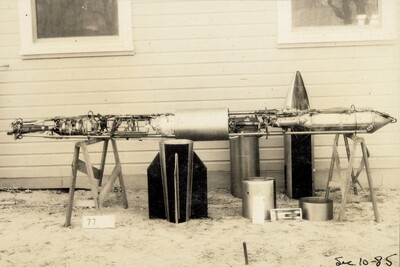 • [012] Completed rocket, with combustion chamber and nozzle at top, August 1925 by Esther C. Goddard