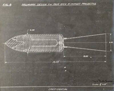 • [010] Preliminary design for Four Inch Aircraft Projectile, circa 1918 by Robert H. Goddard