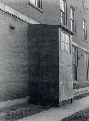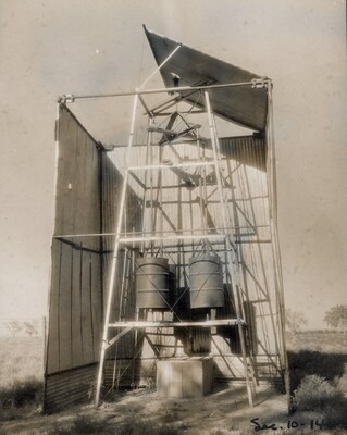 • [014] Sheet iron shelter at physics laboratory of Clark University, 1925 by Esther C. Goddard