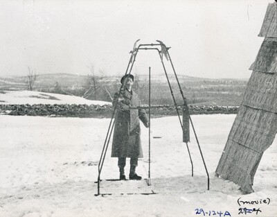 • [020] Testing frame and wind break at Ward Farm, Auburn, Mass., March 1926 by Esther C. Goddard