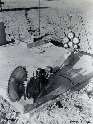 Photograph of the "setup for photographing instruments in K series of static tests" November 1935 (annotation by Esther Goddard). Between November 22, 1935 and February 12, 1936, Goddard and his team conducted a series of ten static tests that were named the 'K' Series. This was a series of ten proving-stand tests for the development of a more powerful motor, 10 inches in diameter. In Reel 7 of The Goddard Rocket Film Reels, 00:00 - 04:01 shows how one of these static tests is carried out. Then, 04:01 - 06:44 shows the 'K' series of tests.
