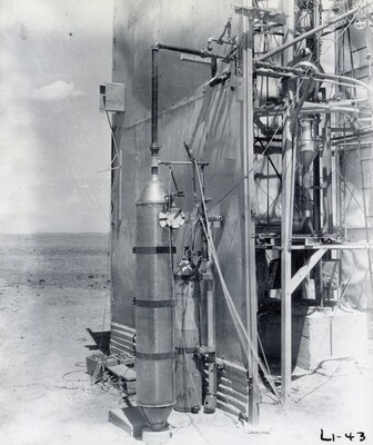 Photograph of pressure system at the launching tower on May 11, 1936.Between May 11, 1936 and August 9, 1838, Robert Goddard conducted the L-Series of tests in Roswell, New Mexico. Goddard and his wife Esther lived in Roswell from 1930 to 1932 and 1934 to 1942 as a result of Guggenheim-funded grants, allowing Goddard to conduct his research and experiments with rocketry. The L-Series consisted of thirty flight tests divided into three sections (A; L1-L7; B; L8-L15; C; L16-L30) testing ten-inch diameter motors in nitrogen-pressured rockets. Seventeen of these tests were flights tests, while the other thirteen were static tests. The L-Series tackled a range of variables and challenges that came with building larger rockets. Reel 8 of The Goddard Rocket Film Reels contains 22 minutes of footage from the 'L' tests.