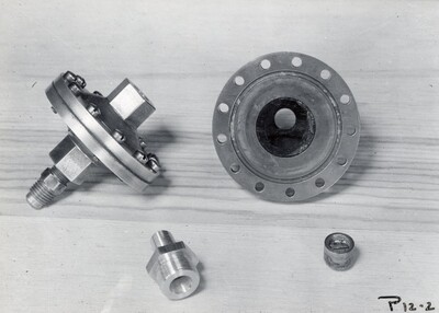 Photograph of a "gas generator spray head". This piece was used in the P12 test which took place on August 4, 1939.