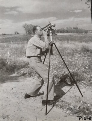 Goddard, Esther C., "[259] Charles Mansur with recording telescope adapted for higher flights using erect-image surveying, February 1940" (1940). The Goddard Rocket Researches: A Photographic Record [Individual Photographs]. 258.