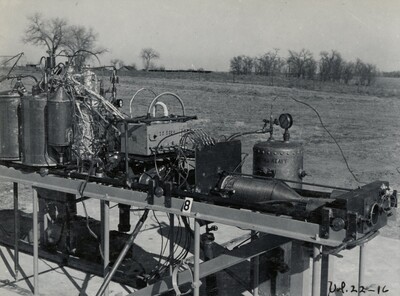 Photograph of a setup for variable thrust pump test, March 9, 1942.