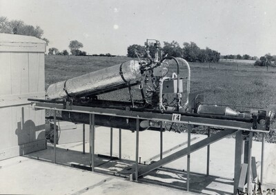 Starting in September 1941, Robert Goddard began a period of government contact work for the Bureau of Aeronautics of the Navy Department that would extend through the rest of his life. Goddard's Roswell site was used from September 1941 until moving operations to the Navy Engineering Experiment Station in Annapolis, Maryland in July of 1942. Goddard had been looking for military opportunities since the start of World War II, as questions of national defense became a top priority. Following a period of frustrations, obstacles, and feeling left out of the breakthroughs happening around him re: jet propulsion and rocket-propelled piloted aircraft, he finally secured government work. Goddard and his associates would work on a liquid-fuel, assisted-takeoff unit for aircraft, which required modifying and adapting his rocket from the vertical to the horizontal. The variable-thrust rocket motor he perfected during this period would posthumously become the basis for the Curtiss-Wright engine on the Bell X-2 supersonic research aircraft. Footage from Robert Goddard's 1941-1945 government work can be seen in Reel 11 of The Goddard Rocket Film Reels.