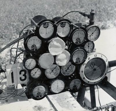 Photograph showing the instrument board for testing a high-pressure tank unit, May 9, 1942.