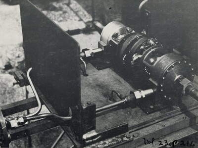 Goddard, Esther C., "[337] Setup for pump tests with compressed air power used to operate the turbines, August 3 1944" (1944). The Goddard Rocket Researches: A Photographic Record [Individual Photographs]. 338.