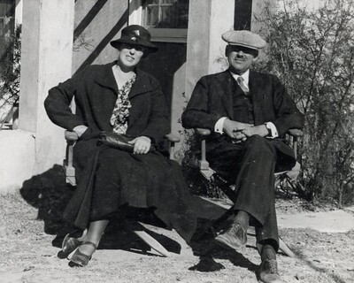 Robert and Esther Goddard at their home, Mescalero Ranch, in Roswell, New Mexico, circa 1937. This photograph is part of the final section of Esther Goddard's photo album titled "A Few Informal Photographs, Through the Years". Not all of these photographs were taken by Esther.