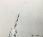 Photograph of the July 17, 1929 test depicting the rocket in flight. This still was taken from a piece of 16mm film shot by Esther Goddard. Esther would often extract still images from her own footage. Footage from this flight can be seen in can be seen in Reel 2 of The Goddard Rocket Film Reels.