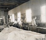 Photograph circa 1930 of the "shop interior along north side. Rocket was covered, to avoid dust and dirt" (annotation by Esther Goddard). The shop was built by Goddard and was situated east of Robert and Esther's ranch house in Roswell, New Mexico. In 1930, Goddard received his first Guggenheim grant (this one from Daniel) which would bring Robert and Esther to Roswell for two years of rocket research between 1930 and 1932. They would eventually relocate there for a much longer stretch of time, 1934-1942, under grants from the Daniel and Florence Guggenheim Foundation. In this photo album, as well as The Papers of Robert H. Goddard, Esther refers to this 1930-1932 period as "The First New Mexico Adventure".