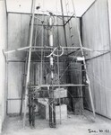 Photograph of the "setup for test #72, which gave first flight in New Mexico, December 30th 1930" (annotation by Esther Goddard). By "first flight in New Mexico", Esther is referring to the first successful flight since Robert began his research there earlier in 1930. The rocket was 11 feet long and weighed 33.5 pounds when empty. It reached an altitude of 2000 feet and a maximum speed of 500 miles per hour. The gas pressure tank was used to force liquid oxygen and gasoline into the combustion chamber. Esther shot footage of this flight, which can be seen in Reel 4 of The Goddard Rocket Film Reels.